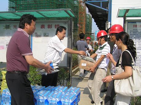 7月26日下午,安徽建工集團(tuán)工會(huì)副主席李鵬飛一行在省三建副總經(jīng)理駱新農(nóng)的陪同下,來到該公司高速·濱湖時(shí)代廣場二期項(xiàng)目部和亞華名苑二期項(xiàng)目部“送清涼”。將綠豆、白糖、礦泉水等防暑降溫食品送到工地,受到了職工歡迎。