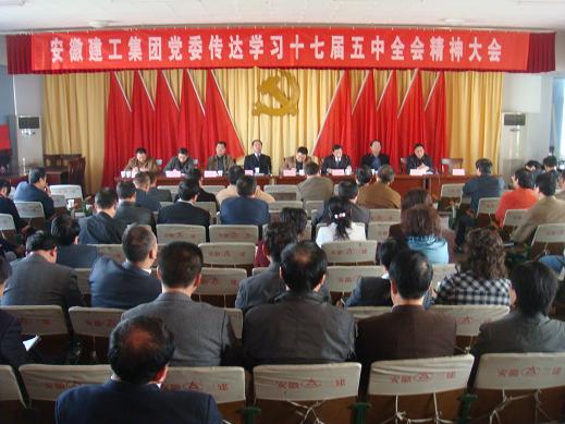 11月10日上午,安徽建工集團(tuán)有限公司黨委召開傳達(dá)學(xué)習(xí)十七屆五中全會(huì)精神大會(huì),集團(tuán)公司領(lǐng)導(dǎo),所屬各單位領(lǐng)導(dǎo)班子成員、黨群部門負(fù)責(zé)人,集團(tuán)機(jī)關(guān)全體黨員參加會(huì)議。