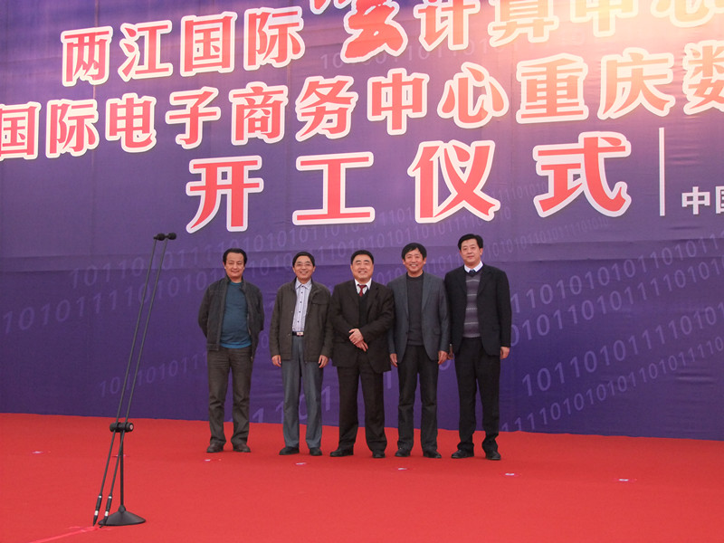 在4月6日的兩江新區(qū)兩江國際云計算中心奠基啟動儀式上,重慶市市長黃奇帆為兩江國際云計算中心授牌、市領(lǐng)導(dǎo)翁杰明、童小平參加開工儀式。集團公司董事長胡運成出席開工儀式并為重慶兩江新區(qū)兩江國際云計算中心暨中國國際電子商務(wù)中心重慶數(shù)據(jù)產(chǎn)業(yè)園奠基。隨同胡運成董事長參加儀式的有集團公司副總經(jīng)理王元曦、二建公司總經(jīng)理費瑞林、國內(nèi)公司總經(jīng)理陳傳文等。