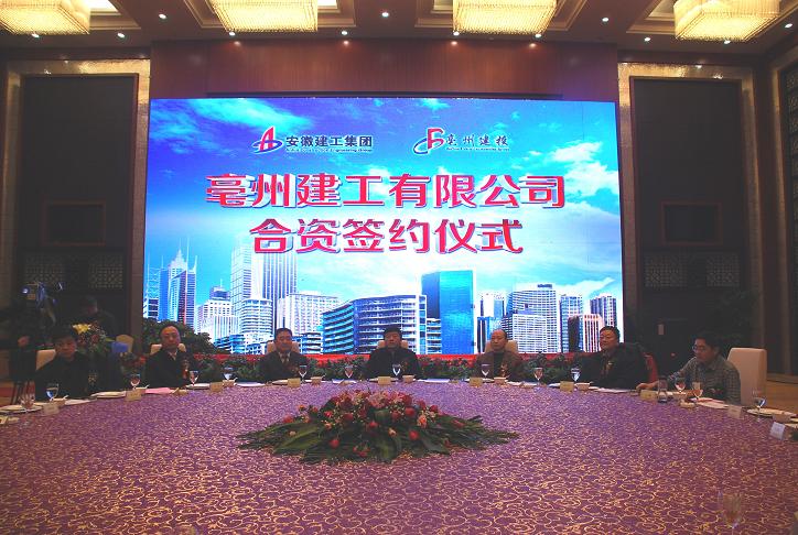 12月31日,亳州建工有限公司舉行合資簽約儀式。亳州市委書記、市人大常委會(huì)主任方春明,市委常委、常務(wù)副市長汪一光,安徽建工集團(tuán)董事長、黨委書記胡運(yùn)成,副董事長、總經(jīng)理、黨委副書記趙時(shí)運(yùn),集團(tuán)副總經(jīng)理、黨委委員霍向東、王元曦等出席簽約儀式。安徽建工集團(tuán)董事長、黨委書記胡運(yùn)成在簽約儀式上致辭。