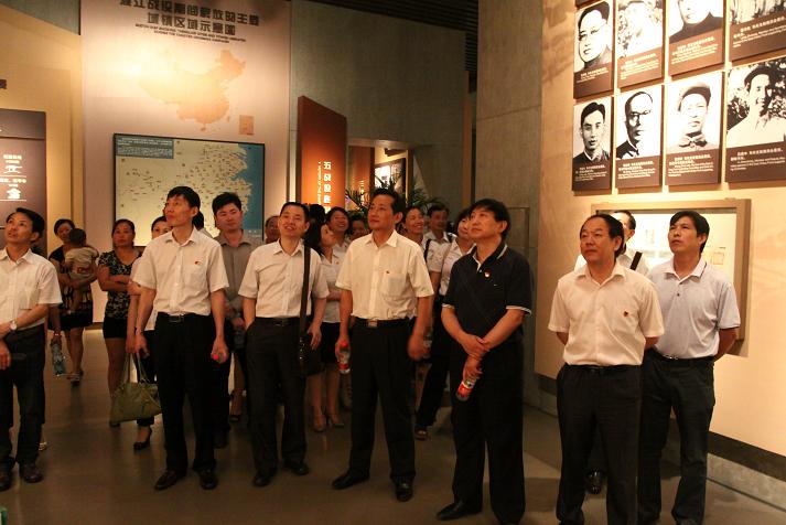 在渡江戰(zhàn)役總前委的塑像前,全體黨員面對(duì)黨旗,面對(duì)先烈,莊嚴(yán)舉起右手,新黨員入黨宣誓,老黨員重溫誓詞。全體黨員莊嚴(yán)承諾。隨后,大家進(jìn)入渡江戰(zhàn)役紀(jì)念館參觀,共同學(xué)習(xí)和緬懷先烈們的英雄事跡。