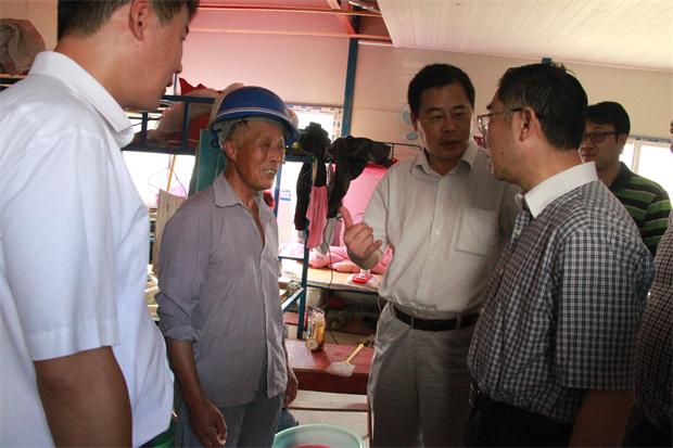 在三建八公司大圩金葡萄項(xiàng)目農(nóng)民工生活區(qū),張毅走進(jìn)工人宿舍,與工友拉起了家常。交談中一位叫李云星的工友告訴他,大家對(duì)目前的收入和生活感到滿意,張毅聽(tīng)了非常高興。張毅隨后又詳細(xì)查看了淋浴間、茶水棚、農(nóng)民工業(yè)余學(xué)校、食堂等處,對(duì)農(nóng)民工生活區(qū)設(shè)施和管理給予充分肯定。當(dāng)看到每個(gè)房間都配有空調(diào)時(shí),對(duì)我公司的做法給予贊揚(yáng)。