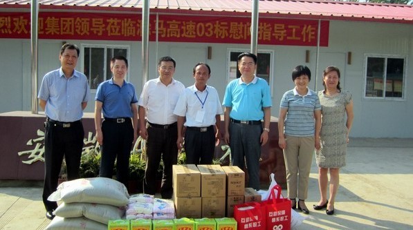 時(shí)值五黃六月,炎陽炙人,7月24日下午,安徽建工集團(tuán)總經(jīng)理劉家靜一行在省路橋公司董事長、總經(jīng)理汪衛(wèi)東、黨委書記陳光磊的陪同下,冒著酷暑來到該公司承建的滁馬03標(biāo),對(duì)奮戰(zhàn)在一線的廣大員工進(jìn)行親切慰問,送上慰問金和慰問品;并對(duì)項(xiàng)目各項(xiàng)工作進(jìn)行了檢查指導(dǎo)。
