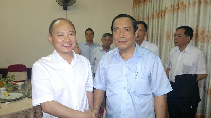越南河靜省委書記阮清平(右一)與趙時運董事長親切握手