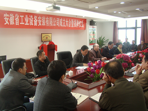 11月19日上午,安徽省工業(yè)設備安裝有限公司成立大會暨揭牌儀式在公司十六樓大會議室隆重舉行。安裝公司全體中層副職以上管理干部近五十人參加大會。集團公司董事長、黨委書記趙時運,副董事長、黨委副書記李長斌,紀委書記、工會主席牛曙東及相關部門負責人出席會議。牛曙東書記主持會議。