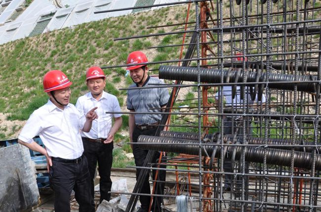集團(tuán)董事長(zhǎng)、黨委書記趙時(shí)運(yùn)(中)踏勘工地現(xiàn)場(chǎng)