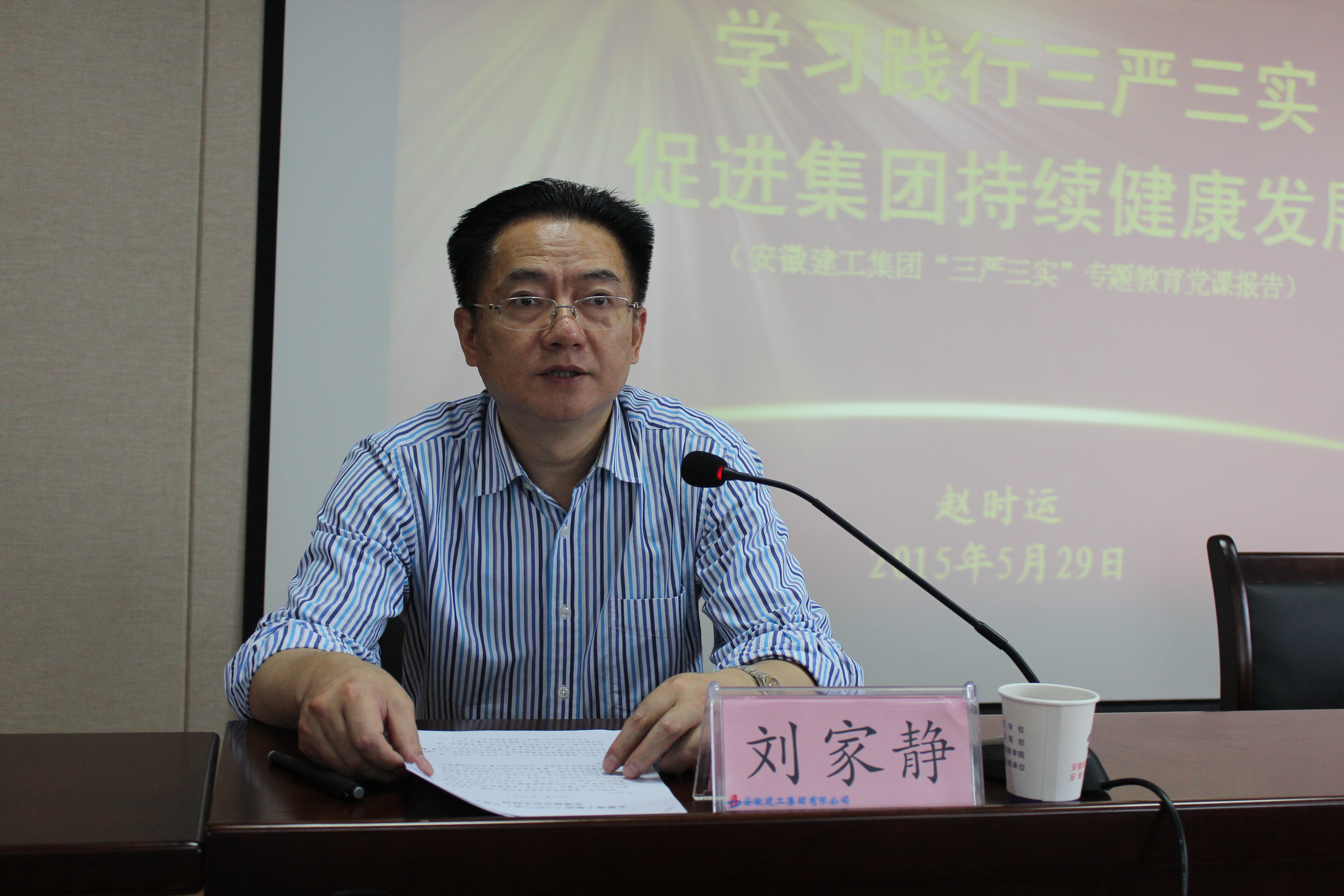 5月29日,安徽建工集團(tuán)舉辦“三嚴(yán)三實(shí)”專題教育黨課報(bào)告會(huì)。集團(tuán)公司黨委書(shū)記、董事長(zhǎng)趙時(shí)運(yùn)作了題為《學(xué)習(xí)踐行三嚴(yán)三實(shí) 促進(jìn)集團(tuán)持續(xù)健康發(fā)展》的專題教育黨課報(bào)告,以此為標(biāo)志,建工集團(tuán)“三嚴(yán)三實(shí)”專題教育正式啟動(dòng)。集團(tuán)公司黨委副書(shū)記、總經(jīng)理劉家靜主持會(huì)議。集團(tuán)公司領(lǐng)導(dǎo)班子成員,機(jī)關(guān)部門(mén)負(fù)責(zé)人,所屬各單位、直屬經(jīng)濟(jì)實(shí)體領(lǐng)導(dǎo)班子成員,上市公司高管及子公司部分黨政主要負(fù)責(zé)人和部分職工代表170余人參加了黨課報(bào)告會(huì)。