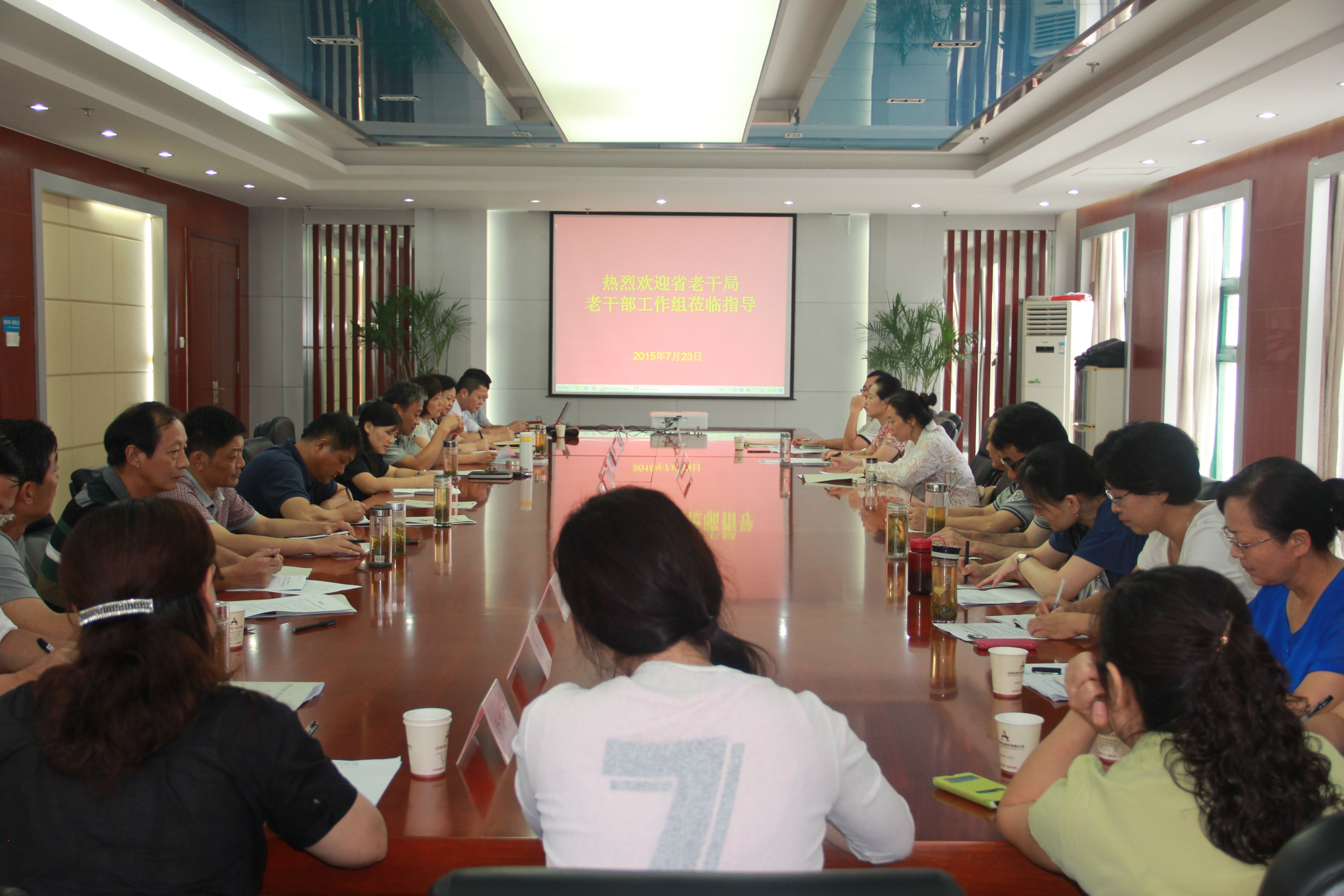 7月23日,安徽省老干部工作調(diào)研組赴安徽建工集團(tuán)召開調(diào)研座談會。調(diào)研組由安徽省老干局省直處處長湯慶帶隊(duì),省衛(wèi)生廳、省財(cái)政廳、省勞動和社會保障廳參與調(diào)研。本次調(diào)研主題是集團(tuán)公司離休干部醫(yī)藥費(fèi)補(bǔ)助工作情況及安徽水利與安徽建工合并重組后離休老干部工作。集團(tuán)相關(guān)單位分管老干部工作領(lǐng)導(dǎo)及老干部工作負(fù)責(zé)同志20多人參加了座談會。