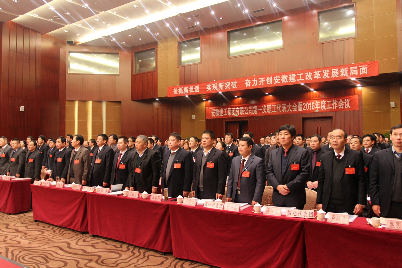 新春伊始,萬(wàn)象更新。1月26—28日,安徽建工集團(tuán)一屆一次職工代表大會(huì)暨2016年工作會(huì)議在合肥勝利召開。集團(tuán)公司281名職工代表及部分特邀代表、列席代表齊聚一堂、共商大計(jì)。大會(huì)聽取并審議通過(guò)了集團(tuán)公司《總經(jīng)理工作報(bào)告》、《財(cái)務(wù)工作報(bào)告》、《工會(huì)工作報(bào)告》,聽取了《改制改革整體上市進(jìn)展情況的通報(bào)》,集團(tuán)公司黨委書記、董事長(zhǎng)趙時(shí)運(yùn)作會(huì)議講話。會(huì)議全面回顧總結(jié)2015年及“十二五”時(shí)期工作,科學(xué)分析當(dāng)前面臨的形勢(shì),對(duì)2016年及“十三五”發(fā)展進(jìn)行總體部署,號(hào)召集團(tuán)全體職工團(tuán)結(jié)一致、堅(jiān)定信心、銳意進(jìn)取、真抓實(shí)干,奮力開創(chuàng)安徽建工改革發(fā)展新局面。會(huì)議表彰了2015年度集團(tuán)公司先進(jìn)單位、先進(jìn)集體、先進(jìn)個(gè)人;簽訂了2016年度經(jīng)營(yíng)業(yè)績(jī)責(zé)任書和黨委工作目標(biāo)責(zé)任書。省國(guó)資委副主任、黨委委員項(xiàng)小龍,省住建廳副廳長(zhǎng)曹劍出席會(huì)議并講話。集團(tuán)公司黨委副書記牛曙東主持大會(huì)并致開幕詞;集團(tuán)公司董事、副總經(jīng)理、黨委委員楊廣亮致閉幕詞。