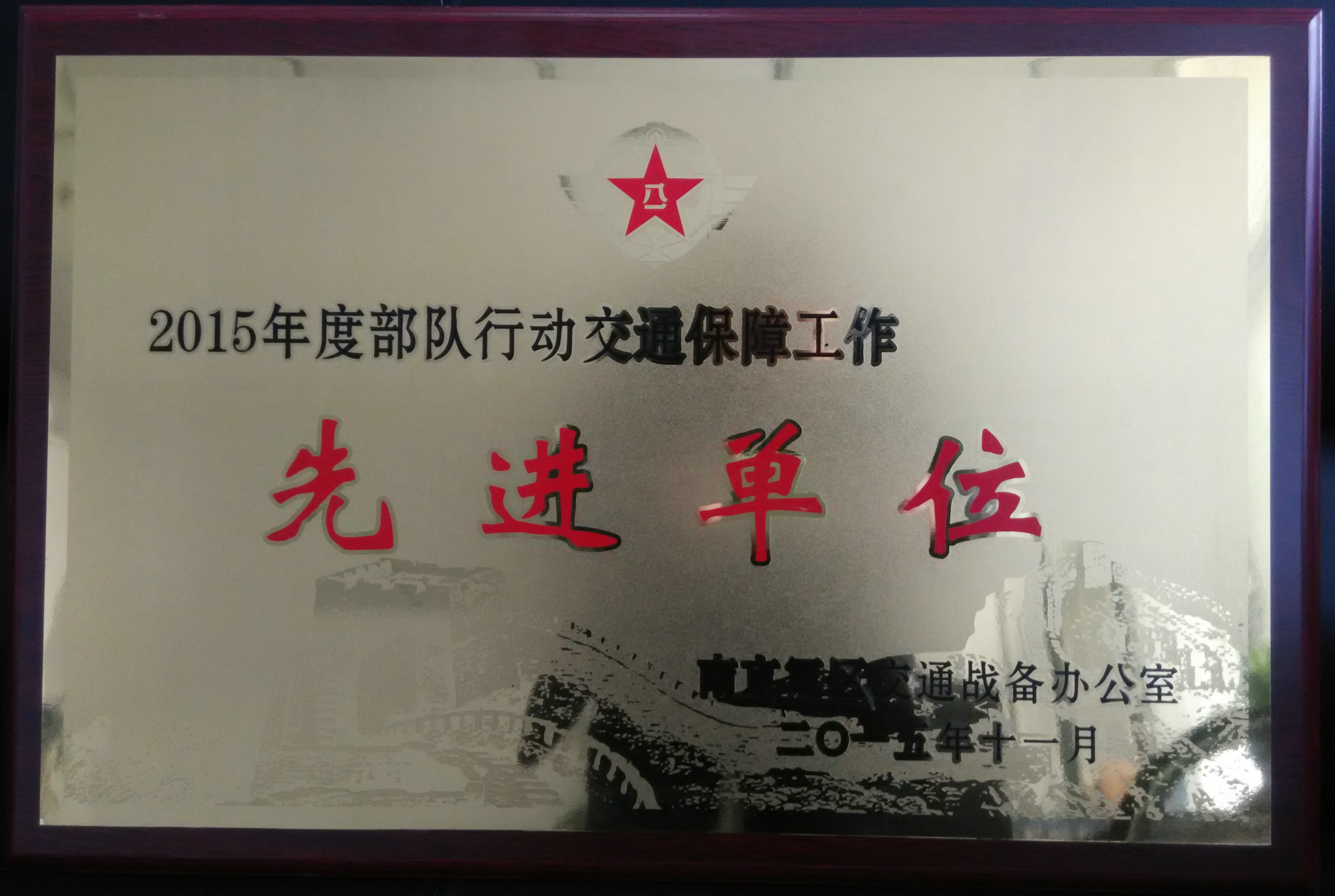 安徽建工集團(tuán)獲得“2015年度部隊(duì)行動(dòng)交通保障工作先進(jìn)單位”稱號(hào)
