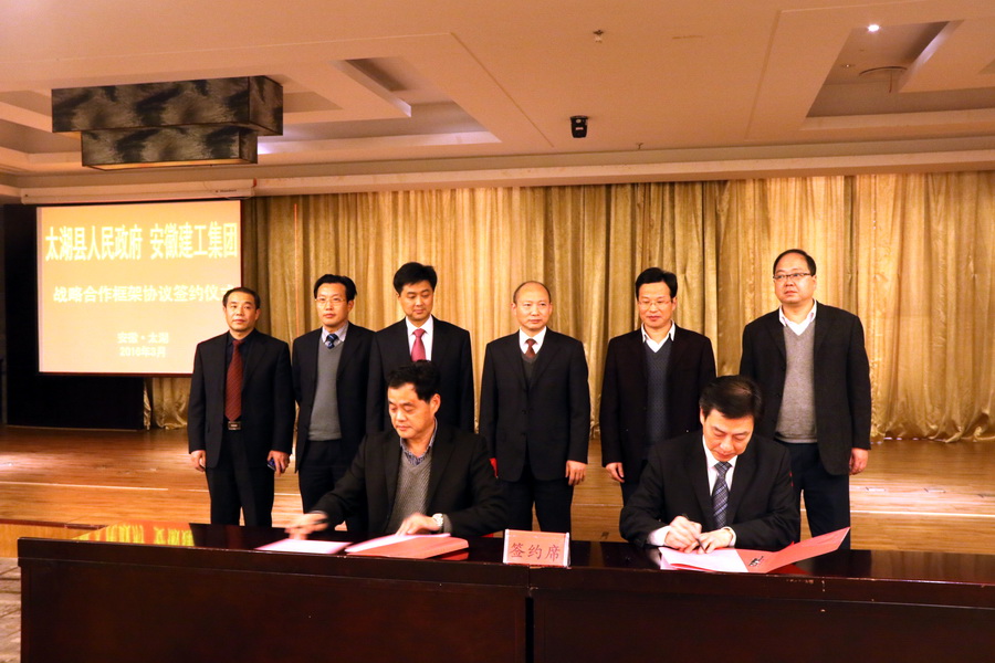 趙時運董事長介紹了安徽建工集團基本情況和近年來改革發(fā)展取得的成績。他說,太湖縣歷史悠久,山清水秀,縣域經(jīng)濟實力不斷增強,投資前景十分廣闊。安徽建工集團與太湖縣人民政府通過協(xié)商一致,在交通基礎設施、開發(fā)區(qū)建設、城市基礎設施、水利水務、環(huán)保、城市綜合開發(fā)等領域建立全面戰(zhàn)略合作關系,是集聚雙方資源、發(fā)揮各自優(yōu)勢、尋求合作共贏的大膽嘗試,也是我們站在“十三五”的新起點上、謀劃未來的戰(zhàn)略舉措。我們將按照“以PPP為引領、通過投資帶動,深化合作,全面發(fā)展”的思路,增進相互信任,加強溝通交流,努力實現(xiàn)互利共贏。安徽建工集團將信守承諾,嚴格遵守合作框架協(xié)議,認真履行責任,高度重視謀劃,確保具體項目盡快落地,為太湖縣的發(fā)展作出貢獻。