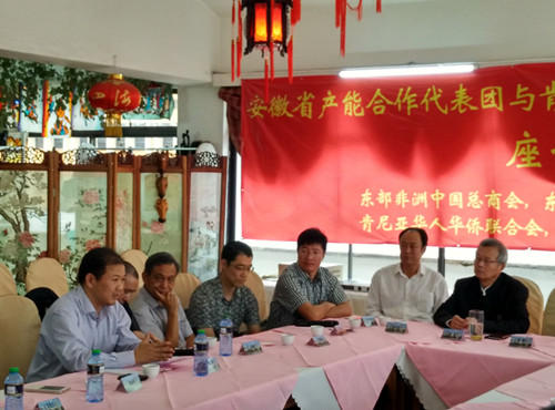 4月1日,安徽產(chǎn)能合作代表團(tuán)在肯尼亞首都內(nèi)羅畢與肯尼亞華人社團(tuán)暨皖籍企業(yè)家舉行座談會(huì),安徽建工集團(tuán)和安徽海螺集團(tuán)、江淮汽車(chē)、安徽農(nóng)墾集團(tuán)等在肯安徽企業(yè)的代表出席座談會(huì)。