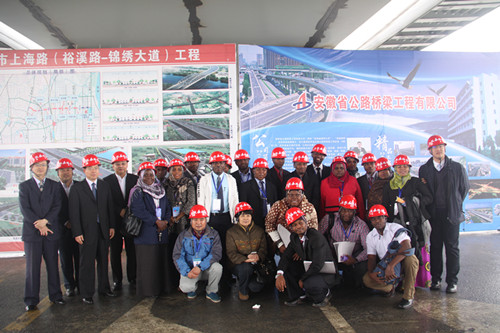 集團副總經(jīng)理許克順接待了Salma Mzee KHAMIS女士為團長的研修班一行。在集團29樓多媒體會議室,研修班學員觀看了集團宣傳片,了解了集團近年來發(fā)展成績。隨后,研修班學員實地參觀了由路橋公司承建的合肥市上海路(裕溪路-錦繡大道)工程2標項目部,圍繞工程施工重難點、各工序控制要點等與項目負責人進行了深入交流,對“大建設速度”一致稱贊。