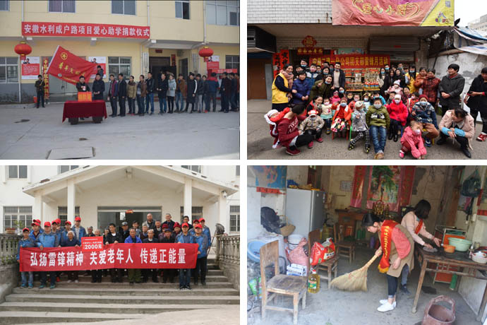 安徽水利舉行了“安徽水利愛心助學(xué)基金”第二次公開募捐,2300名員工踴躍捐款;安徽路橋志愿者服務(wù)隊走進(jìn)社會福利中心、養(yǎng)老院慰問關(guān)愛老年,安徽路港項目青年拜訪駐地附近貧困孤寡村民;安徽三建濱湖學(xué)校項目青年到金寨光榮院慰問革命老人;安建建設(shè)組織機(jī)關(guān)青年赴項目食堂給大家包餃子,到楊店小學(xué)開展希望助學(xué)等。廣大團(tuán)員青年立足實際扶貧助弱、奉獻(xiàn)愛心,服務(wù)他人。