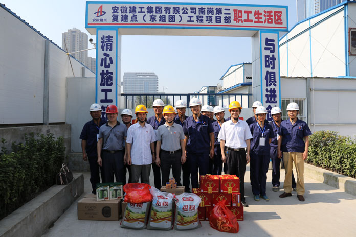 烈日炎炎,驕陽似火。7月26日上午,集團(tuán)公司黨委書記、董事長(zhǎng)趙時(shí)運(yùn)在集團(tuán)工會(huì)主席徐曉光等陪同下,赴安建建設(shè)和安徽三建施工承建的合肥市高新區(qū)南崗復(fù)建點(diǎn)項(xiàng)目,親切慰問高溫下奮戰(zhàn)在項(xiàng)目一線的全體員工,為他們送去了防暑降溫物品。安建建設(shè)總經(jīng)理陳傳文、安徽三建董事長(zhǎng)左登宏等陪同慰問。
