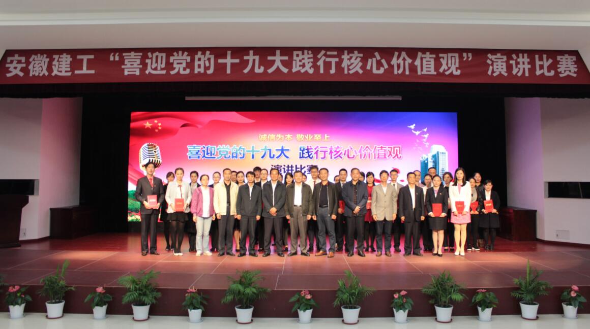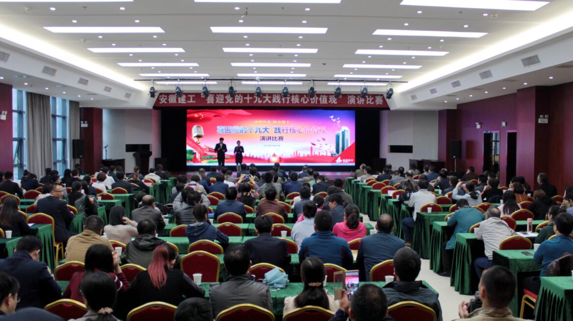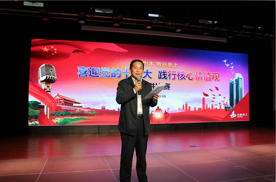 在主持人精彩的開場白之后演講比賽正式拉開序幕,參賽選手圍繞“喜迎黨的十九大,踐行核心價(jià)值觀”這一主題,結(jié)合各自工作和生活經(jīng)歷,借助自己設(shè)計(jì)制作的背景短片或PPT,用真摯的情感、生動(dòng)的事例,聲情并茂、滿懷激情地講述了安徽建工人立足崗位,弘揚(yáng)踐行集團(tuán)核心價(jià)值觀的深切體會(huì)和感人故事,展現(xiàn)了身邊員工于平凡中奉獻(xiàn)青春、于艱苦中助力改革、于崗位中磨練尖兵的樸實(shí)情懷。比賽中,評(píng)委們圍繞參賽選手的演講內(nèi)容、演講技巧、演講效果、時(shí)間控制、脫稿情況等方面進(jìn)行了現(xiàn)場綜合考評(píng)和打分,并現(xiàn)場宣布比賽結(jié)果;比賽結(jié)束后,領(lǐng)導(dǎo)評(píng)委嘉賓為獲獎(jiǎng)選手進(jìn)行了頒獎(jiǎng)。