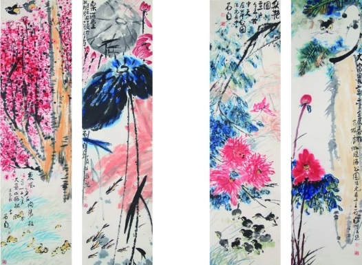 安徽二建 石德元 國(guó)畫(huà)作品《春夏秋冬》四條屏