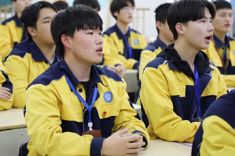 “紅星閃閃放光彩,紅星燦燦暖胸懷,紅星是咱工農(nóng)的心,黨的光輝照萬代!”……每到晚自習(xí)時間,安徽建工技師學(xué)院汽車與機電技術(shù)系各班的教室中就會傳來嘹亮的歌聲。