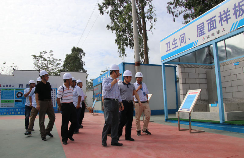 在安徽三建三亞紅塘灣項目,調(diào)研組深入標準化施工現(xiàn)場,詳細察看了樣板施工區(qū)、VR安全警示體驗館及工程實體,對于該項目在業(yè)主實測評比中的優(yōu)異表現(xiàn)表示了充分肯定。