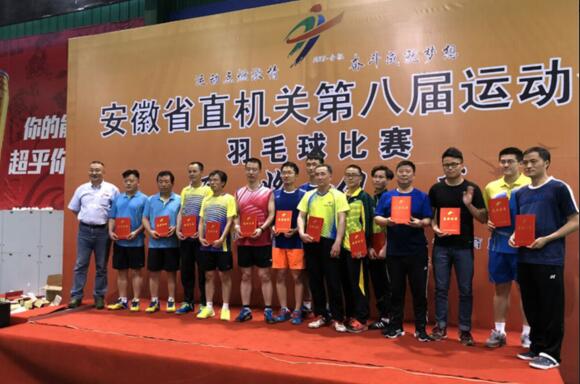 羽毛球隊(duì)作為安徽建工集團(tuán)首個(gè)登場亮相的代表隊(duì),在5月15日到20日的安徽省直機(jī)關(guān)第八屆運(yùn)動(dòng)會(huì)羽毛球比賽中,經(jīng)過小組賽和決賽階段的淘汰賽,取得了歷史性突破,集團(tuán)公司領(lǐng)導(dǎo)戴良軍獲得領(lǐng)導(dǎo)干部組雙打第五名 ,安建地產(chǎn)公司黃戰(zhàn)和安徽水利徐偉獲得男子甲組雙打第二名。