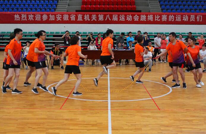 在跳繩比賽中,安徽建工代表隊(duì)發(fā)揮團(tuán)隊(duì)優(yōu)勢,奮勇拼搏、緊密配合,勇奪10人8字型跳大繩團(tuán)體、1分鐘一帶一雙人跳(安徽建機(jī)公司劉國枝、王帶娣)、30秒單搖女子甲組個(gè)人(安徽建機(jī)公司王帶娣)、30秒單搖男子乙組個(gè)人(安徽建機(jī)公司徐杰)4項(xiàng)冠軍;同時(shí),跳繩隊(duì)還獲得2項(xiàng)個(gè)人賽第三名,2項(xiàng)個(gè)人賽第五名,實(shí)現(xiàn)了跳繩項(xiàng)目的大豐收,其中團(tuán)體賽成績創(chuàng)造了賽會(huì)記錄,贏得了觀眾和各隊(duì)的一致稱贊。
