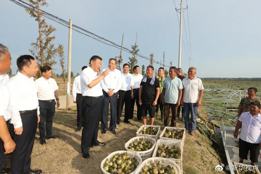 “這一直是我牽掛的事?!?8日下午,正在安徽考察調(diào)研的習(xí)近平總書記來到阜陽市阜南縣蒙洼蓄洪區(qū)利民村西田坡莊臺,頂著炎炎烈日,走進田間地頭,深入莊臺農(nóng)戶,看望慰問受災(zāi)群眾。鄉(xiāng)親們告訴總書記:“蓄洪期間,大家住在莊臺,電沒斷、水照供、生活用品有人送?,F(xiàn)在水退了,都在搶種補種,水退到哪里,就補種到哪里。請總書記放心!”習(xí)近平高興地說:“我一直牽掛災(zāi)區(qū)的群眾,看到鄉(xiāng)親們生產(chǎn)生活都有著落、有希望,我的心就踏實?!?/FONT>
