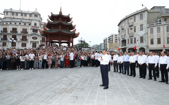日下午來到廣東省汕頭市小公園開埠區(qū),走進(jìn)開埠文化陳列館、僑批文物館,了解汕頭開埠歷史、設(shè)立經(jīng)濟(jì)特區(qū)以來的建設(shè)發(fā)展情況,和潮汕僑胞心系家國故土、支持祖國和家鄉(xiāng)建設(shè)的歷史。隨后,習(xí)近平步行察看開埠區(qū)街區(qū)人文歷史風(fēng)貌,同市民群眾親切交流。