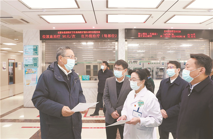2月9日上午,省委書(shū)記李錦斌深入合肥市包河區(qū)淝河鎮(zhèn)社區(qū)衛(wèi)生服務(wù)中心,看望慰問(wèn)奮戰(zhàn)在疫情防控工作第一線的社區(qū)醫(yī)務(wù)工作者。