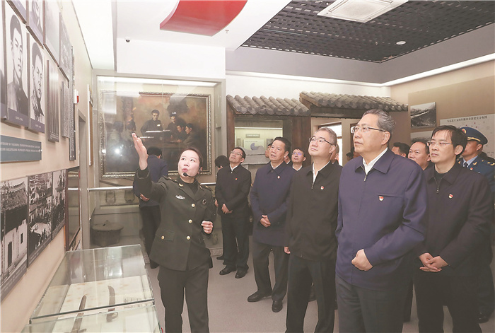 紅二十五軍于1931年10月在金寨麻埠組建,1932年11月底重建,是鄂豫皖蘇區(qū)的一支主力部隊,被譽為“長征先鋒”。來到紅二十五軍軍政機構舊址,李錦斌、王清憲、張昌爾等在一幅幅泛黃的黑白照片中,重溫一段段刻骨銘心的革命故事。李錦斌強調(diào),大別山區(qū)革命歷史悠久,紅色文化厚重。要充分利用好紅色資源,講述好紅色故事,教育引導廣大黨員干部從黨史中汲取持久深厚的奮斗之力,堅定不移聽黨話、跟黨走,以身許黨許國、報黨報國。