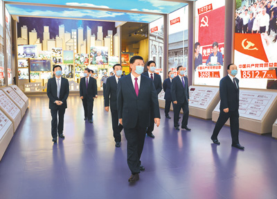 在慶祝中國共產(chǎn)黨成立100周年之際,中共中央總書記、國家主席、中央軍委主席習(xí)近平18日前往中國共產(chǎn)黨歷史展覽館,參觀“‘不忘初心、牢記使命’中國共產(chǎn)黨歷史展覽”,并帶領(lǐng)黨員領(lǐng)導(dǎo)同志重溫入黨誓詞。他強(qiáng)調(diào),黨的歷史是最生動(dòng)、最有說服力的教科書。我們黨的一百年,是矢志踐行初心使命的一百年,是篳路藍(lán)縷奠基立業(yè)的一百年,是創(chuàng)造輝煌開辟未來的一百年。回望過往的奮斗路,眺望前方的奮進(jìn)路,必須把黨的歷史學(xué)習(xí)好、總結(jié)好,把黨的寶貴經(jīng)驗(yàn)傳承好、發(fā)揚(yáng)好,銘記奮斗歷程,擔(dān)當(dāng)歷史使命,從黨的奮斗歷史中汲取前進(jìn)力量。要教育引導(dǎo)廣大黨員、干部通過參觀學(xué)習(xí),更加自覺地不忘初心、牢記使命,增強(qiáng)“四個(gè)意識(shí)”,堅(jiān)定“四個(gè)自信”,始終在思想上政治上行動(dòng)上同黨中央保持高度一致,堅(jiān)定理想信念,學(xué)好用好黨的創(chuàng)新理論,賡續(xù)紅色血脈,發(fā)揚(yáng)光榮傳統(tǒng),發(fā)揮先鋒模范作用,團(tuán)結(jié)帶領(lǐng)全國各族人民,更好立足新發(fā)展階段、貫徹新發(fā)展理念、構(gòu)建新發(fā)展格局,全面做好改革發(fā)展穩(wěn)定各項(xiàng)工作,匯聚起全面建設(shè)社會(huì)主義現(xiàn)代化國家、實(shí)現(xiàn)中華民族偉大復(fù)興中國夢(mèng)的磅礴力量。
