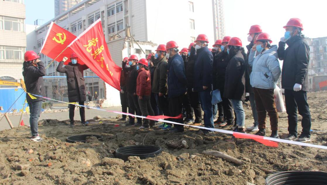 2月1日,施工機械就位,現(xiàn)場建筑物拆除,進行場地平整,施工主干道鋪設(shè)完成。成立黨員突擊隊,帶頭攻堅克難。即時召開誓師大會,黨總支書記王錕領(lǐng)誓:全力以赴,保證安全、保證質(zhì)量、保證工期,堅決完成建設(shè)任務(wù)。
