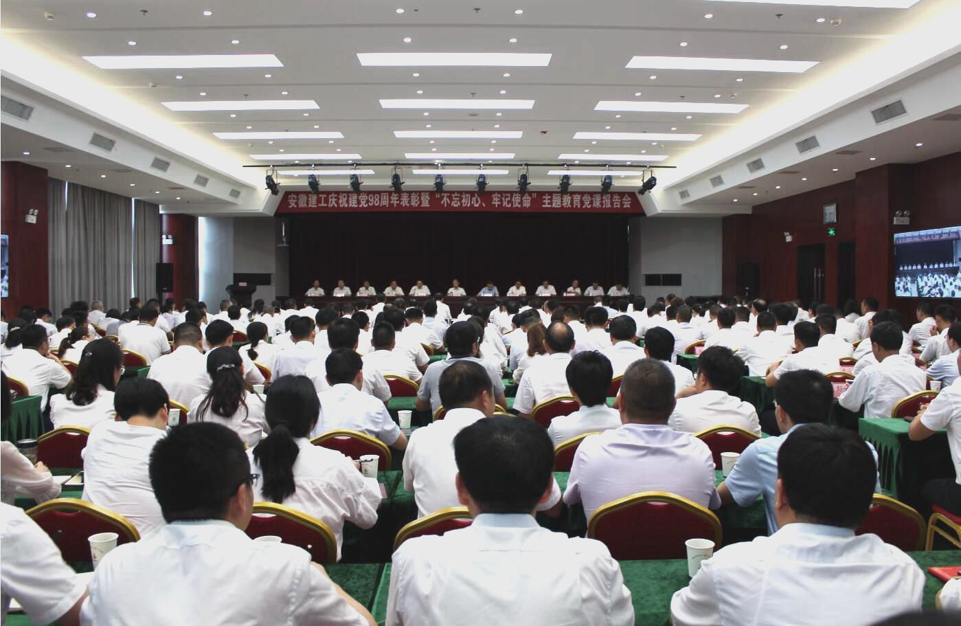 為慶祝建黨98周年,深入開展“不忘初心、牢記使命”主題教育,7月1日下午,安徽建工控股黨委慶祝建黨98周年表彰暨“不忘初心、牢記使命”主題教育黨課報(bào)告會(huì)在安建大廈三樓會(huì)議室舉行。會(huì)議堅(jiān)持以習(xí)近平新時(shí)代中國(guó)特色社會(huì)主義思想為指導(dǎo),號(hào)召集團(tuán)各級(jí)黨組織和全體黨員更加緊密地團(tuán)結(jié)在以習(xí)近平同志為核心的黨中央周圍,不忘初心、牢記使命,團(tuán)結(jié)一心、拼搏奮斗,堅(jiān)持用高質(zhì)量黨建引領(lǐng)企業(yè)高質(zhì)量發(fā)展,為打造一流安徽建工、建設(shè)現(xiàn)代化五大發(fā)展美好安徽作出新的更大貢獻(xiàn)。
