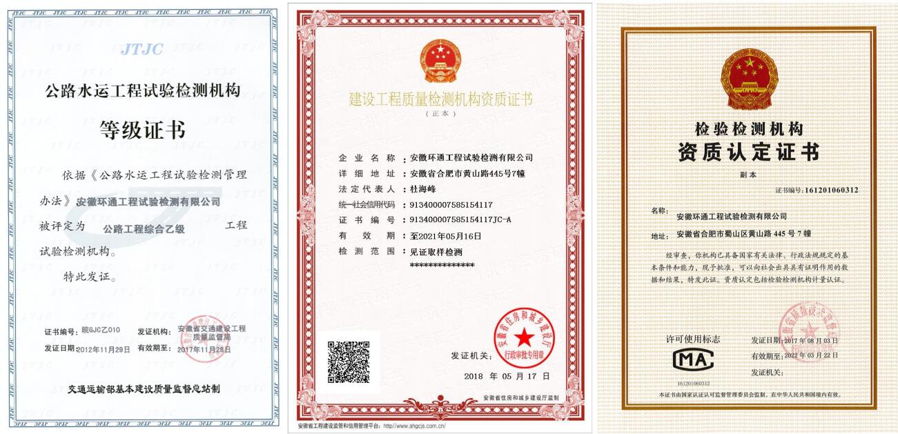 多年來,環(huán)通公司秉持“誠信為本、敬業(yè)至上”的安徽建工核心價(jià)值觀,本著“公平、公正、科學(xué)、高效”的經(jīng)營(yíng)原則,堅(jiān)持“素質(zhì)求高、檢驗(yàn)求準(zhǔn)、作風(fēng)求嚴(yán)、服務(wù)求優(yōu)”的精神,一如既往地為交通建設(shè)事業(yè)服務(wù),用匠心鋪就了一條品質(zhì)發(fā)展之路。