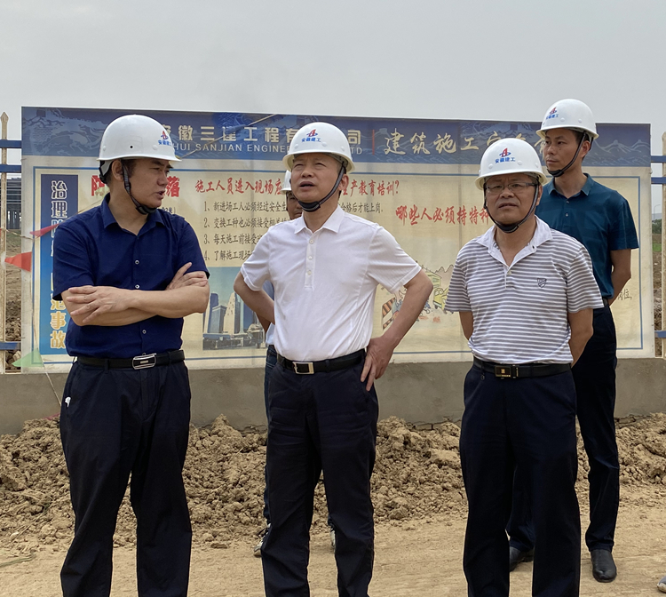趙時運首先來到正在進行鋼結(jié)構(gòu)施工的現(xiàn)場,詳細了解了工程進度、廠房結(jié)構(gòu)、周邊道路以及出入口位置等具體情況,全面了解吳山構(gòu)件基地建設(shè)的總體進度和布局。他還詳細詢問了工廠智能化建設(shè)、場內(nèi)外運輸?shù)惹闆r。趙時運高度關(guān)注工程質(zhì)量,他叮囑項目部一定要高度重視回填土質(zhì)量,抓好細節(jié),打造精品優(yōu)質(zhì)工程。