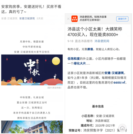 因沛縣防疫要求,安建·漢城源筑項(xiàng)目在中秋節(jié)到來之際,以線上推廣促銷活動(dòng)為主,舉行了“安家購房季——購好房 送豪禮”活動(dòng)。邀請(qǐng)抖音網(wǎng)紅前來現(xiàn)場(chǎng)拍攝視頻并在抖音發(fā)布,宣傳活動(dòng)信息,并通過便民網(wǎng)、微信公眾號(hào)、朋友圈等推廣活動(dòng)及在售信息。營銷策劃部工作人員節(jié)日期間采用輪流排班,堅(jiān)守營銷崗位,緊抓雙節(jié)期間置業(yè)節(jié)點(diǎn),緊鑼密鼓加速項(xiàng)目銷售工作。安建漢城源筑9月累計(jì)認(rèn)購住宅19套,車位22個(gè),累計(jì)認(rèn)購金額超2000萬元。