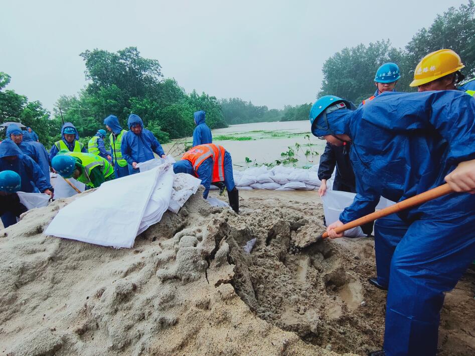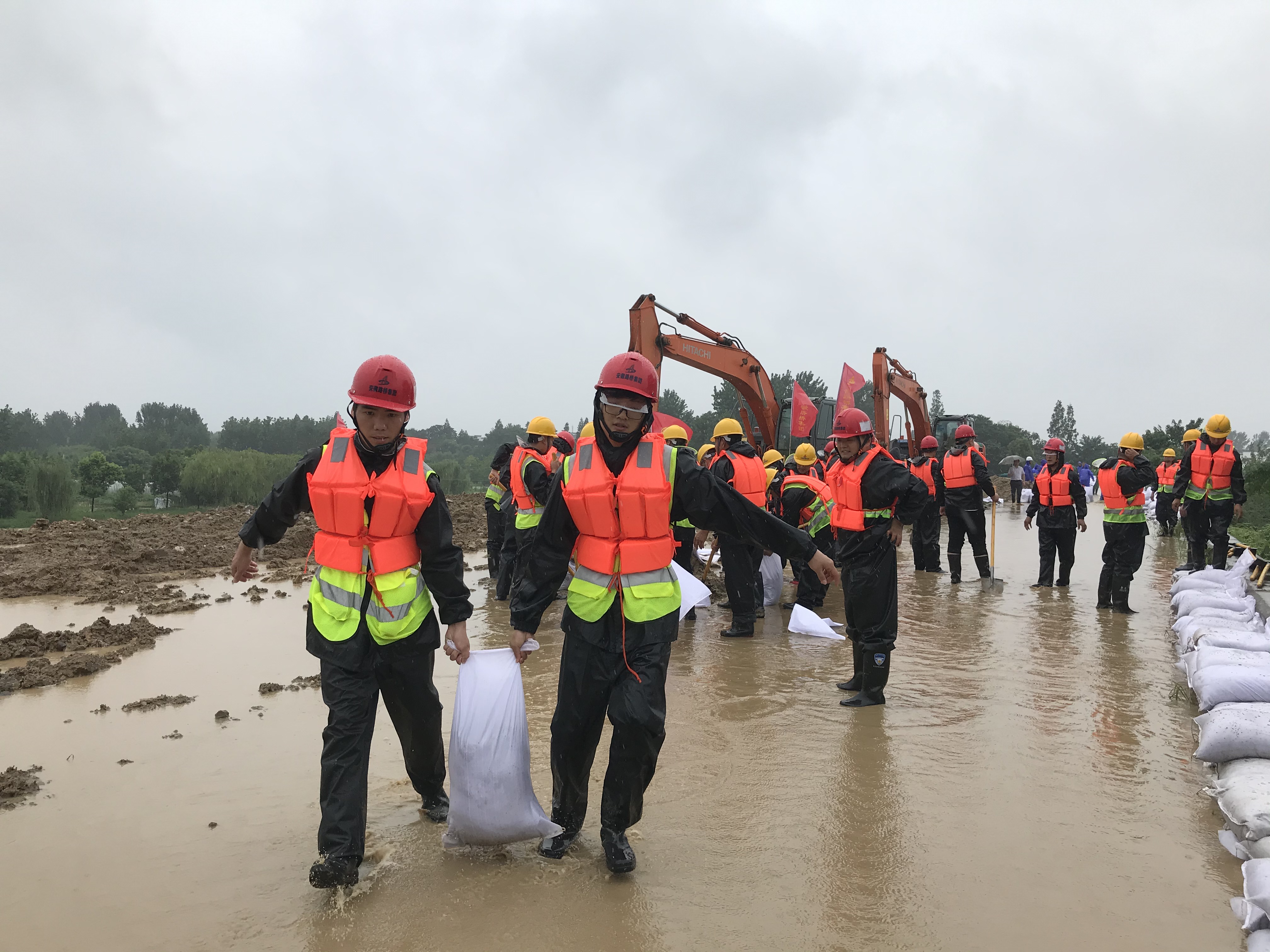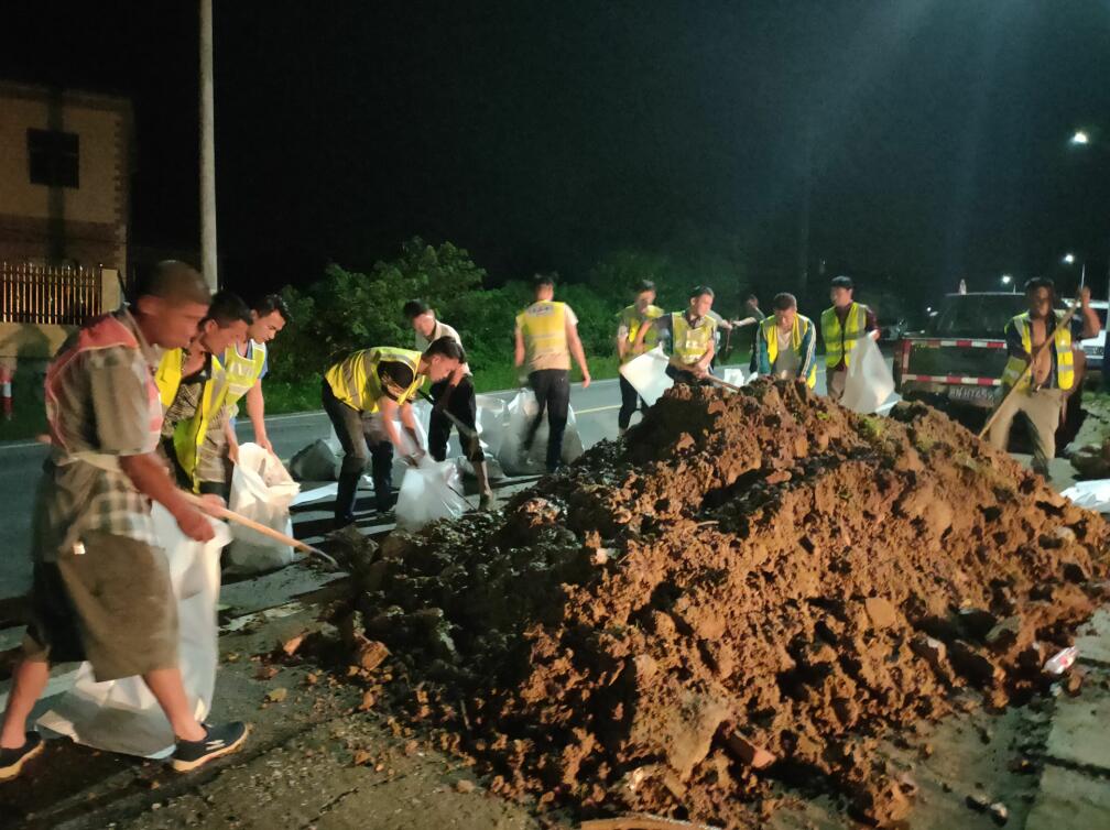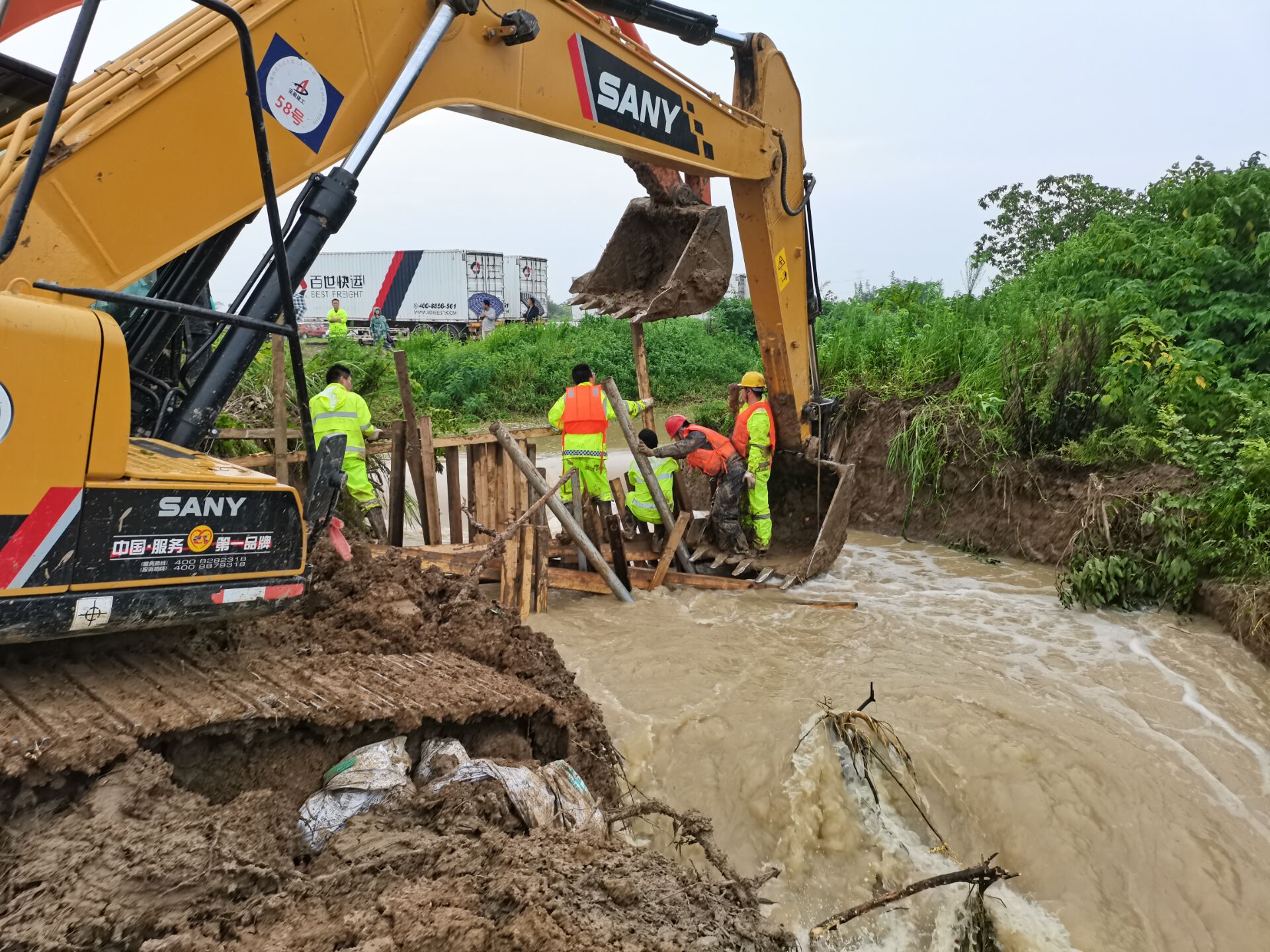 7月19日,安徽路港市政分公司興業(yè)大道項(xiàng)目部收到當(dāng)?shù)卣笾?,迅速組建聯(lián)合防汛青年突擊隊(duì),并帶領(lǐng)物資設(shè)備火速趕到現(xiàn)場(chǎng)配合當(dāng)?shù)卣舛滦∈裆街Q堤口。