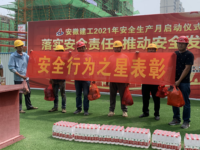 二是“保安康”。各項目部積極開展“落實安全責(zé)任、推動安全發(fā)展”為主題的安全生產(chǎn)月活動,提升全員的安全意識,嚴(yán)格落實每日班前晨會講話制度和安全隱患上報獎勵制度。安建·漢城源筑書香苑項目部為提升勞務(wù)人員的安全意識,每月開展安全行為執(zhí)行表彰評比,對發(fā)現(xiàn)和及時上報安全隱患的人員,給予鼓勵和適當(dāng)?shù)奈镔|(zhì)獎勵,改善了項目部安全環(huán)境,保障了施工人員的生命安全。