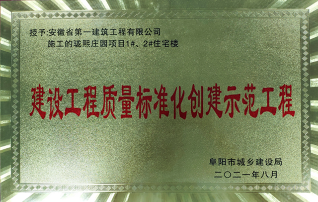2.創(chuàng)標(biāo)化。淮南玫瑰莊園項目、合肥錦繡龍川府EF地塊項目、阜陽瓏熙莊園項目榮獲安徽省安全生產(chǎn)標(biāo)準(zhǔn)化工地稱號;創(chuàng)集團安全標(biāo)準(zhǔn)化工地3個。阜陽瓏熙莊園項目部1#、2#樓榮獲“阜陽市建設(shè)工程質(zhì)量標(biāo)準(zhǔn)化創(chuàng)建示范工程”稱號;淮南玫瑰莊園項目部2#樓、4#樓,獲“淮南市優(yōu)質(zhì)結(jié)構(gòu)獎”;6月份,在信達安徽公司的第三方巡檢中,錦繡龍川府EF地塊獲得全省第二名,信達公園里項目獲得全省第三名。