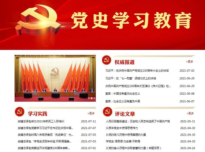 增設(shè)學(xué)習專欄。在公司門戶網(wǎng)站設(shè)置“黨史學(xué)習教育”板塊,動態(tài)發(fā)布人民網(wǎng)、新華網(wǎng)等主流媒體權(quán)威報道、評論文章和公司黨史學(xué)習教育活動有關(guān)新聞報道;公司微信公眾號堅持每日發(fā)布“黨史百年天天讀”;統(tǒng)籌集團年度工作會和職代會以及公司職代會精神宣貫,統(tǒng)一制作、在辦公區(qū)域和所屬項目駐地擺放宣傳展板,懸掛宣傳橫幅;開展“節(jié)日里的黨史教育”,發(fā)布“致敬堅守崗位的勞動者”等專題報道