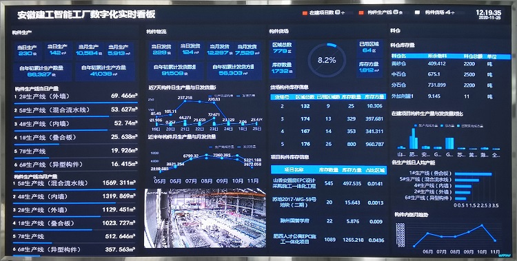 北城工業(yè)公司大力推進(jìn)智能建造模式。采用自行研發(fā)的Smart-PC智能信息管理系統(tǒng),實(shí)現(xiàn)了設(shè)計(jì)、排產(chǎn)、生產(chǎn)、驗(yàn)收、倉(cāng)儲(chǔ)、物流、物資、成本、質(zhì)量、安全、環(huán)保、人員等方面數(shù)字化管理。先進(jìn)的混凝土攪拌站、創(chuàng)新的工藝布置、智能的鋼筋加工設(shè)備、自動(dòng)采集的數(shù)據(jù)系統(tǒng),充分展現(xiàn)了智能建造、綠色發(fā)展的理念。