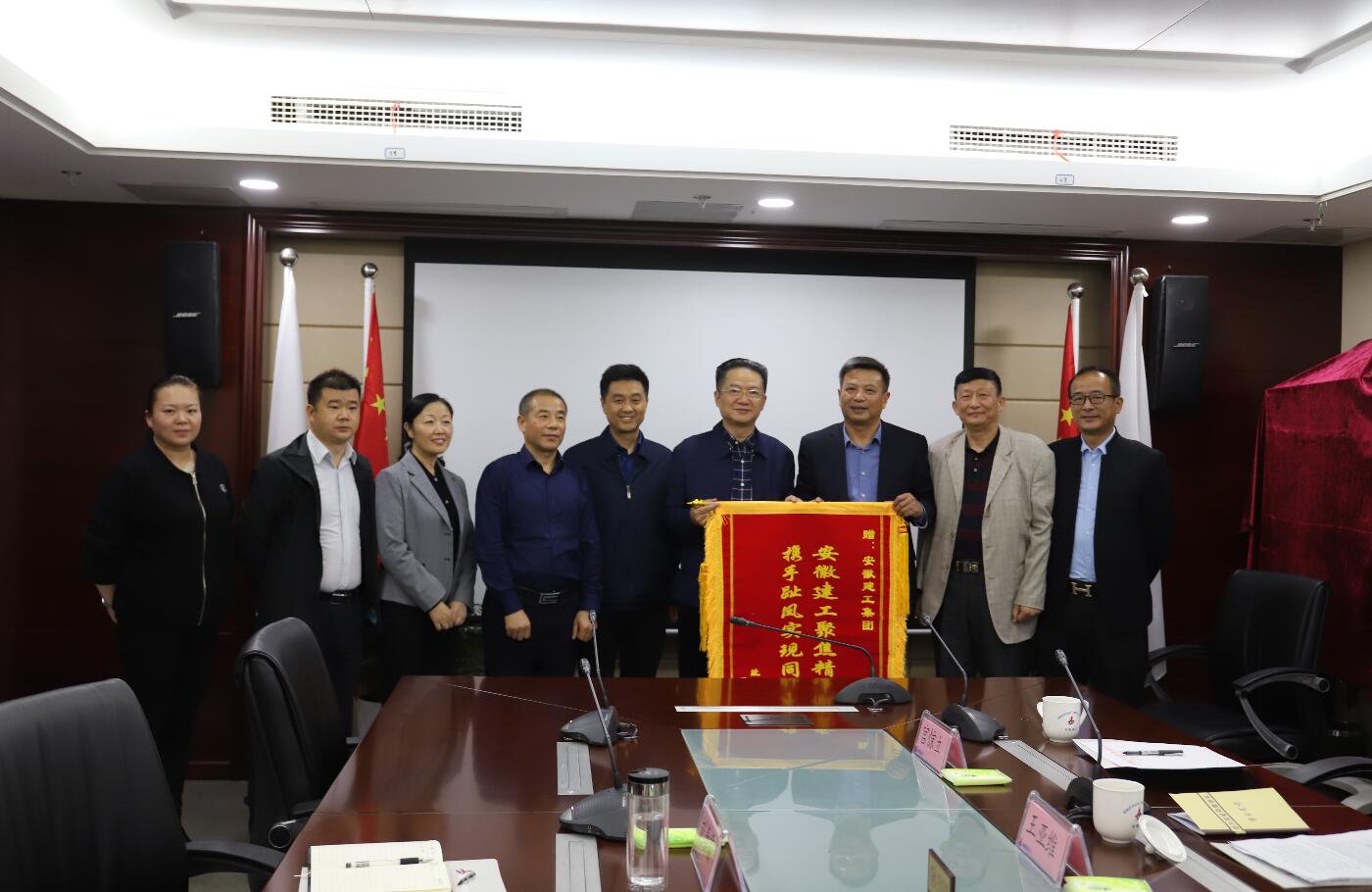 10月28日下午,宿松縣趾鳳鄉(xiāng)黨委書(shū)記張小平,攜鄉(xiāng)村兩委有關(guān)負(fù)責(zé)同志,赴集團(tuán)拜訪(fǎng)并贈(zèng)送錦旗,對(duì)集團(tuán)幫扶工作表示感謝。建工控股黨委副書(shū)記、總經(jīng)理劉家靜親切接待了張小平一行,并主持召開(kāi)座談會(huì)。