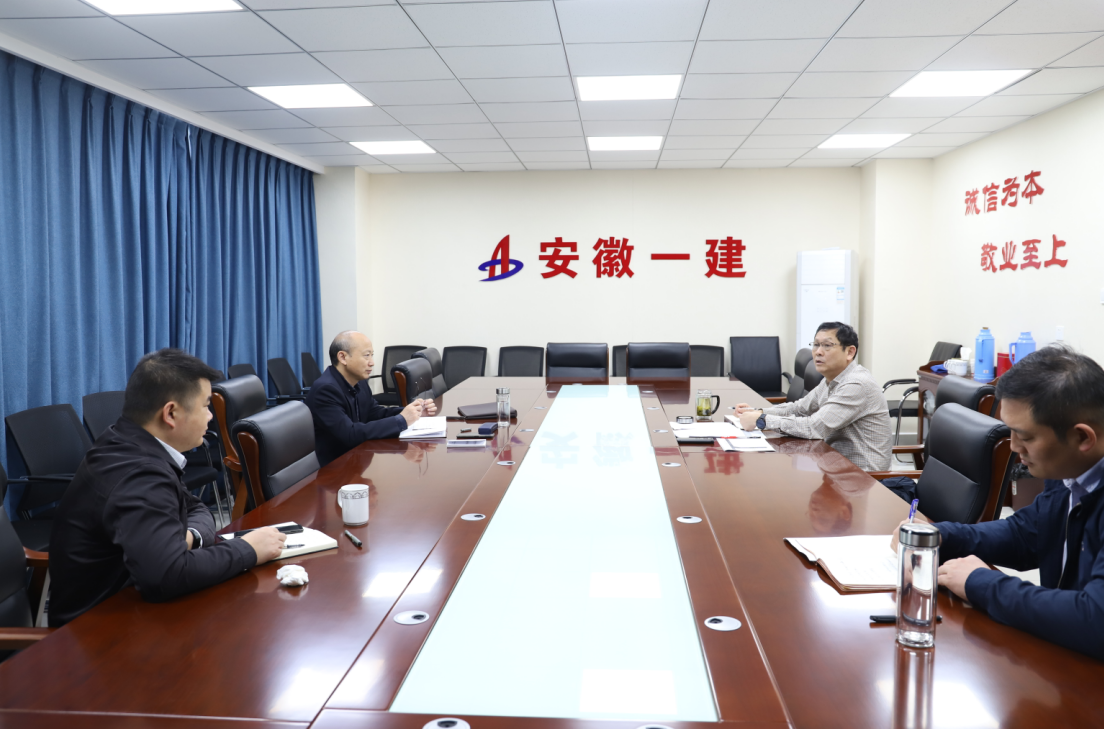 安徽一建黨委書記、董事長(zhǎng)程鵬作情況匯報(bào),副總經(jīng)理代鵬飛參加調(diào)研。