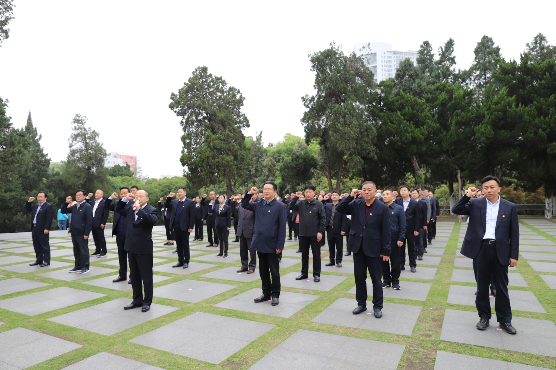 24日下午,集團(tuán)黨委中心組成員及機(jī)關(guān)部門(mén)負(fù)責(zé)人集體赴六安烈士陵園,參觀大別山革命歷史紀(jì)念館,緬懷革命先烈,傳承紅色精神。在烈士陵園廣場(chǎng),雄偉莊嚴(yán)的革命烈士紀(jì)念碑矗立在廣場(chǎng)中央。全體同志向?yàn)橹袊?guó)人民解放事業(yè)和共和國(guó)建設(shè)事業(yè)英勇獻(xiàn)身的烈士默哀,向革命烈士紀(jì)念塔敬獻(xiàn)花籃,并在紀(jì)念塔下重溫入黨誓詞。