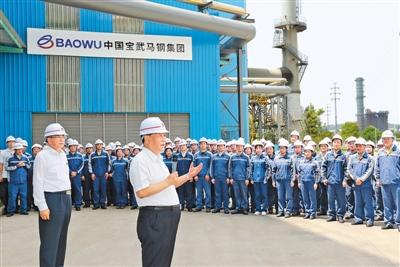馬鞍山市因鋼而設(shè)、因鋼而興。習(xí)近平來到中國寶武馬鋼集團,了解企業(yè)生產(chǎn)經(jīng)營情況,察看重點產(chǎn)品展示。隨后,習(xí)近平走進優(yōu)質(zhì)合金棒材車間,察看加熱爐、初軋機、中軋機等運行情況。車間外,企業(yè)勞動模范、工人代表看到總書記來了,熱烈鼓掌。習(xí)近平親切地同大家打招呼。他指出,疫情發(fā)生以來,馬鋼克服困難,率先復(fù)工復(fù)產(chǎn),上半年產(chǎn)量和營收同比實現(xiàn)“雙升”。要抓住深化國有企業(yè)改革和推動長三角一體化發(fā)展的重大機遇,加強新材料新技術(shù)研發(fā),開發(fā)生產(chǎn)更多技術(shù)含量高、附加值高的新產(chǎn)品,增強市場競爭力。勞動模范是共和國的功臣,要大力弘揚勞模精神。