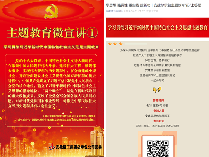 “怎么實(shí)現(xiàn)全黨思想、意志、行動(dòng)的統(tǒng)一?最根本的就是用黨的基本理論武裝全黨?!睂W(xué)習(xí)貫徹習(xí)近平新時(shí)代中國(guó)特色社會(huì)主義思想主題教育開展以來,安建總承包黨委牢牢把握“學(xué)思想、強(qiáng)黨性、重實(shí)踐、建新功”總體要求,緊緊錨定主題教育目標(biāo)任務(wù),堅(jiān)決貫徹落實(shí)習(xí)近平總書記關(guān)于主題教育一系列重要指示批示精神,緊密結(jié)合公司深化改革、轉(zhuǎn)型升級(jí)實(shí)際,以?shī)^進(jìn)姿態(tài)推動(dòng)主題教育扎實(shí)開展。