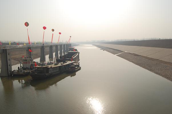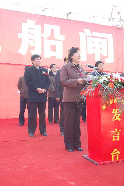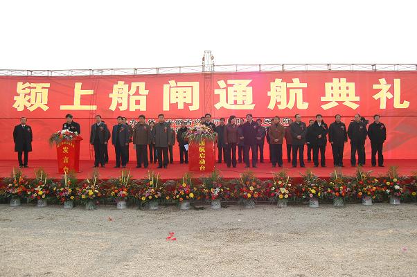 潁上船閘通航典禮由省交通廳副廳長羅寧主持。省長助理花建慧代表省政府向潁上船閘建成通航表示祝賀,她指出:潁上船閘建設(shè)是我省沙潁河復(fù)航的第一個工程,是全省“861計劃”重要項目,建設(shè)潁上船閘,開辟阜陽航運的第二條入淮通道,是沙潁河航運全線復(fù)航的迫切需要,對加快淮河航道網(wǎng)建設(shè)、完善區(qū)域綜合運輸體系、改善流域水環(huán)境、推進國家高等級航道網(wǎng)建設(shè)、促進豫皖合作,特別是皖北地區(qū)發(fā)展都是具有十分重要意義。省港航建設(shè)投資集團公司總經(jīng)理李家俊隨后詳細(xì)介紹了潁上船閘建設(shè)情況,他說:潁上船閘的勝利通航是在省委省政府的悉心關(guān)懷下、阜陽市委市政府和阜陽人民的大力支持下,經(jīng)過所有參建單位的近三年辛勤工作,今日終于勝利通航。潁上船閘建成通航既實現(xiàn)了沿淮群眾多年的夙愿,也為全面回復(fù)沙潁河航運開了一個好頭,作為安徽省“兩干三支”水運主航道之一的沙潁河全線復(fù)航已是指日可待,將對地方經(jīng)濟的發(fā)展起到有力的促進作用。最后,副省長黃海嵩為穎上船閘通航啟動通航按鈕!