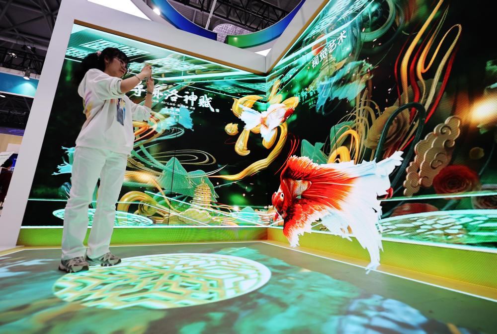 ??2024年4月1日,在安徽合肥舉辦的2024國際顯示技術(shù)大會(huì)上,一名觀眾體驗(yàn)京東方展出的裸眼3D快速拆裝折角屏。