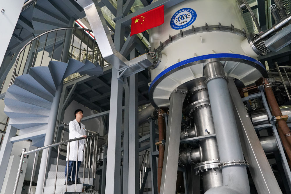 ??這是在中國科學(xué)院合肥物質(zhì)科學(xué)研究院強(qiáng)磁場科學(xué)中心拍攝的國家重大科技基礎(chǔ)設(shè)施“穩(wěn)態(tài)強(qiáng)磁場實(shí)驗(yàn)裝置”混合磁體(2022年10月17日攝)。