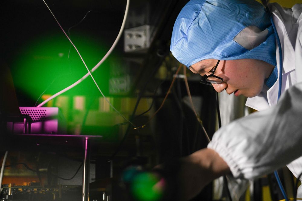 ??2022年1月31日,中國科學(xué)技術(shù)大學(xué)學(xué)生在中國科學(xué)院量子信息重點(diǎn)實(shí)驗(yàn)室做實(shí)驗(yàn)。