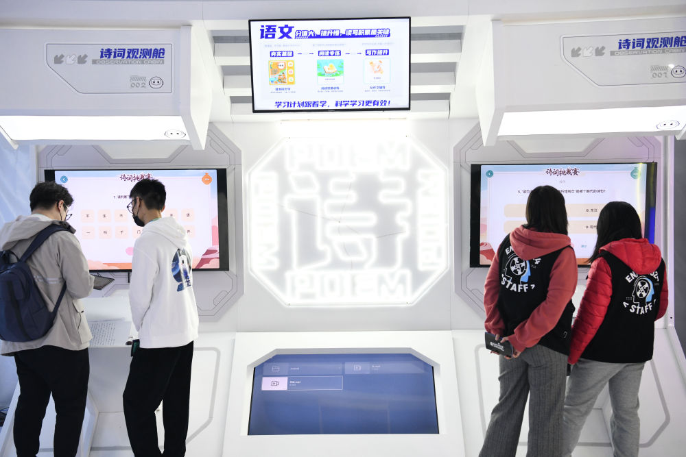 ??2022年11月17日,觀眾在于安徽合肥舉辦的第五屆世界聲博會(huì)上體驗(yàn)教育領(lǐng)域智能產(chǎn)品。